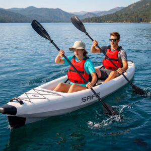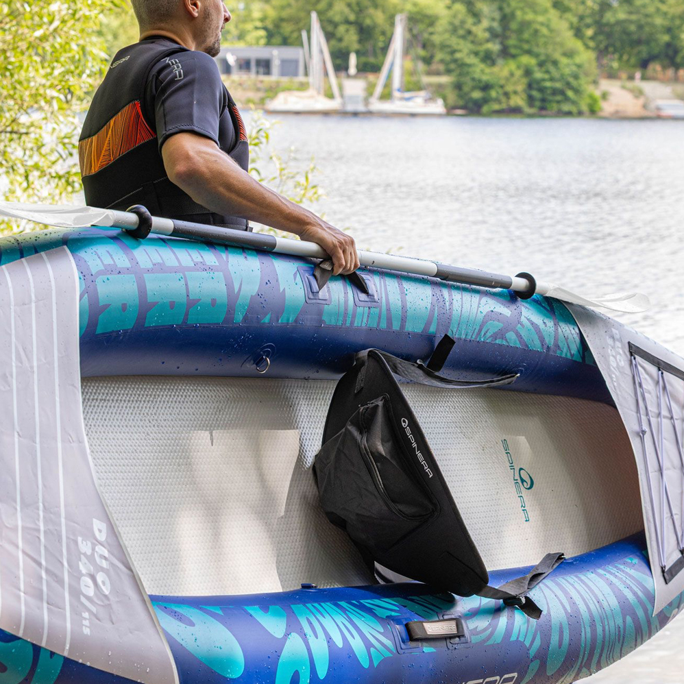 Il design attraente e funzionale del Duo 340 combina comfort e praticità e garantisce ogni volta un’esperienza di pagaiata sicura e piacevole. Viene fornito come un pacchetto completo con tutto il necessario in modo da poter iniziare subito, basta gonfiare e godersi il tempo in acqua!